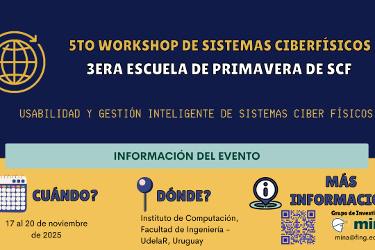 Del 17 al 20 de noviembre de 2025 se realizará el 5° Workshop en Sistemas Ciber Físicos (SCF) y la 3er Escuela de primavera de SCF, lo que consistirá en diversas actividades como cursos y charlas a cargo de especialistas nacionales y del exterior.