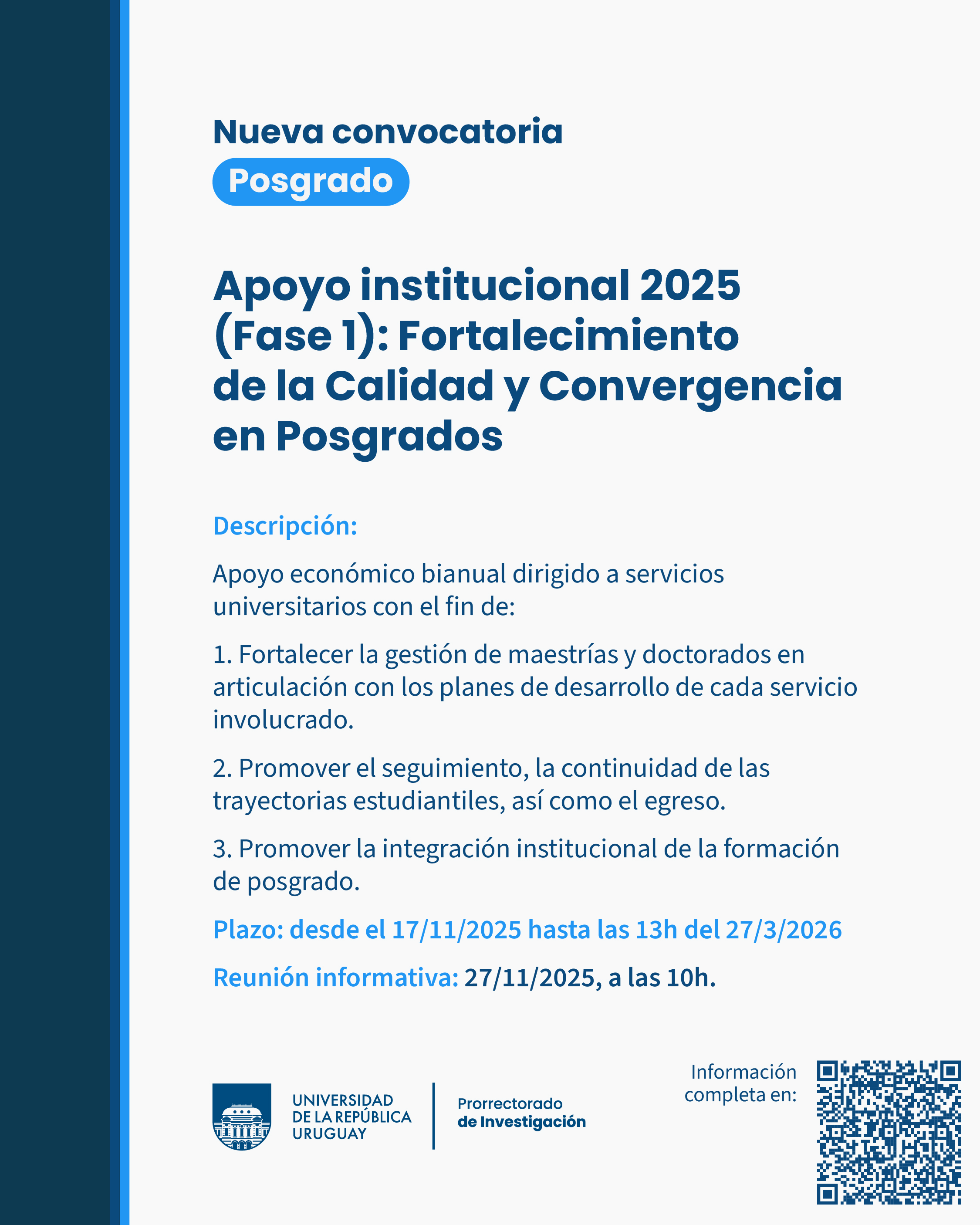 Las bases completas del llamado están disponibles en: https://cap.posgrados.udelar.edu.uy/apoyos.php?path=/apoyos