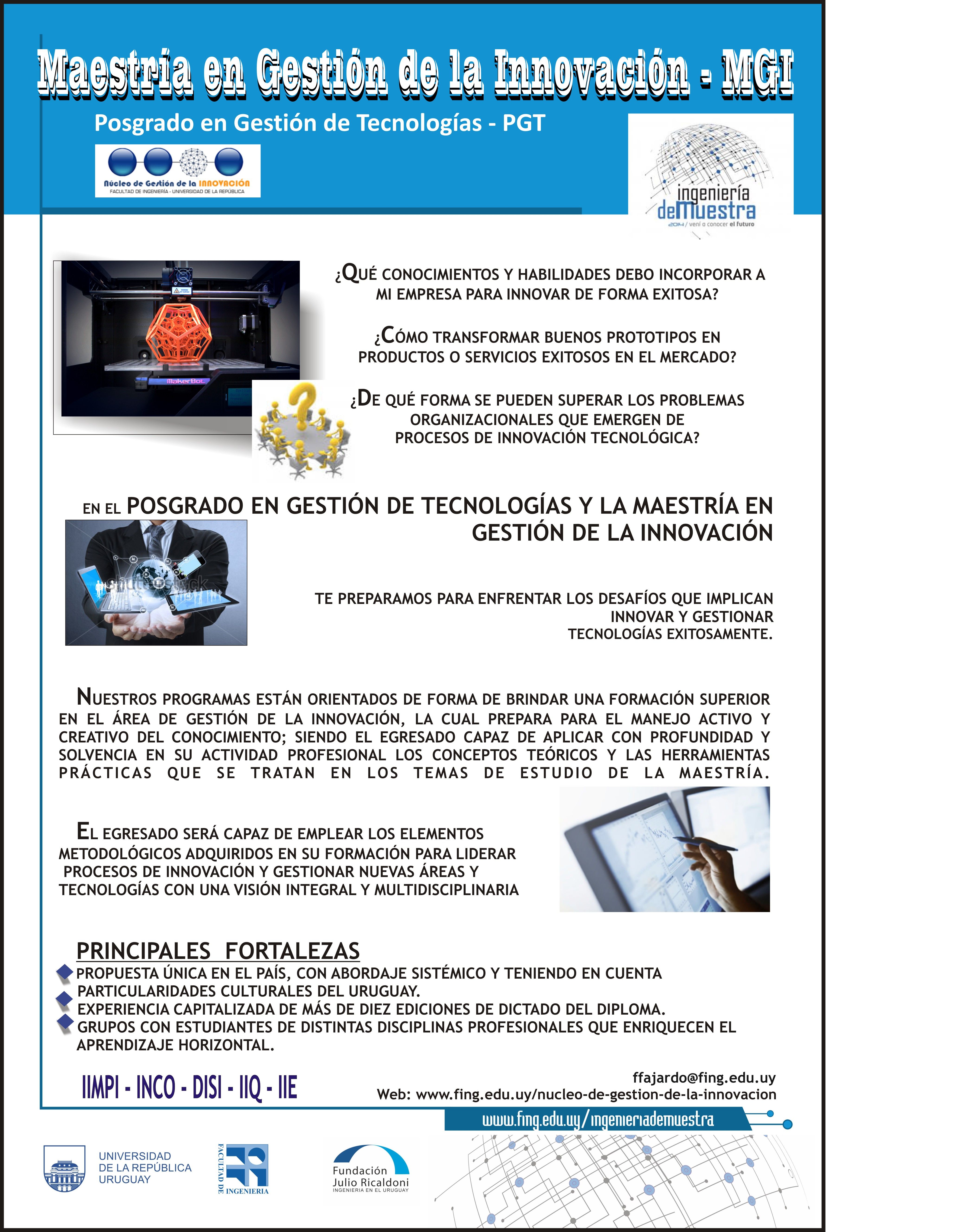 Infórmate sobre nuestros programas en: http://www.fing.edu.uy/nucleo-de-gestion-de-la-innovacion-0/nucleo-de-gestion-de-la-innovacion-portada