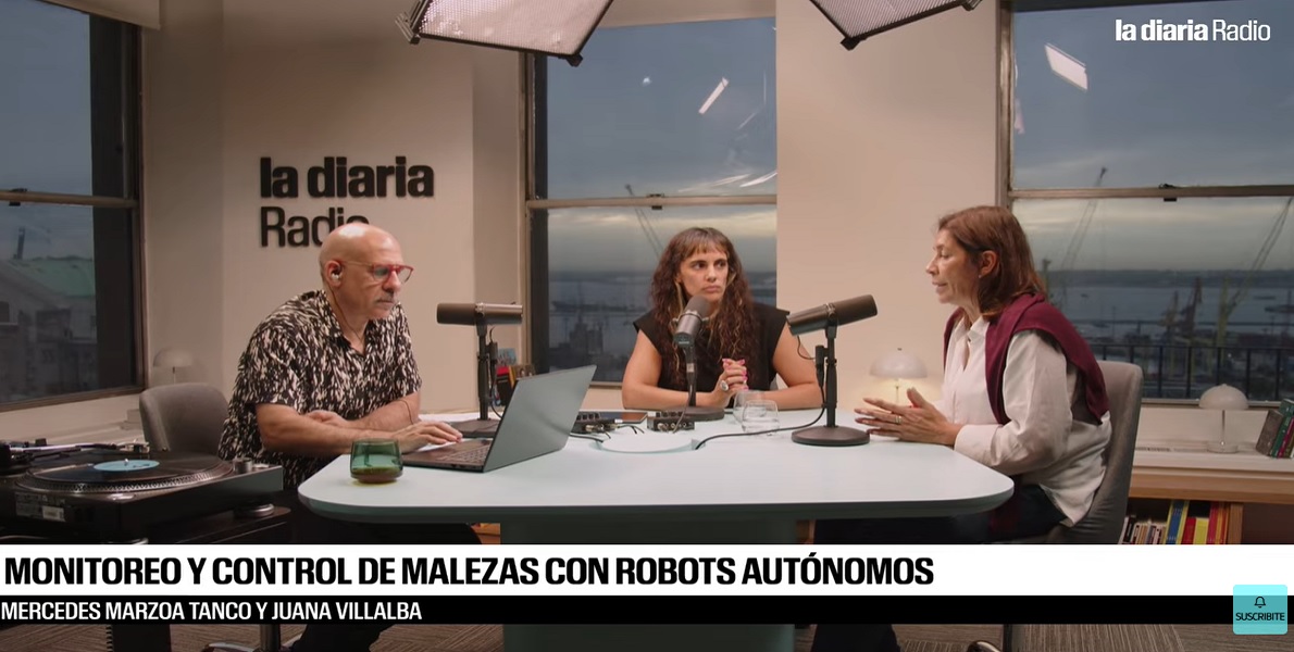 En entrevista con Alejandro Ferreiro, Mercedes Marzoa y Juana Villalba relataron detalles del proyecto y presentaron a "Pipe", un perro robot que es utilizado en monitoreo y control de malezas.